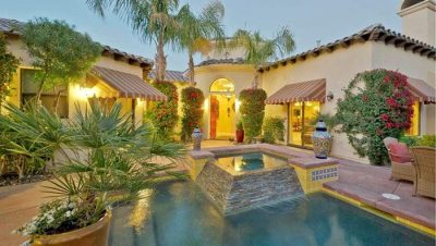 Perched on a hill above Rancho Mirage this Mediterranean styled home offers its new owners sweeping views of the desert from the home, patio and pool areas.